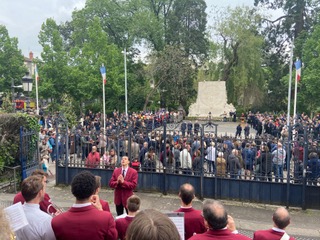 Anlässlich des 80. Jahrestags des Friedens zwischen Frankreich und Deutschland gestalteten deutsche und französische Chöre gemeinsam zwei Friedenskonzerte sowie musikalische Beiträge im Rahmen offizieller Gedenkveranstaltungen. Besonders bewegend war die zweisprachig gesungene Europahymne bei der Gedenkzeremonie am 8. Mai in Aurillac – ein starkes Zeichen für ein gemeinsames Europa und gelebte Freundschaft .