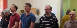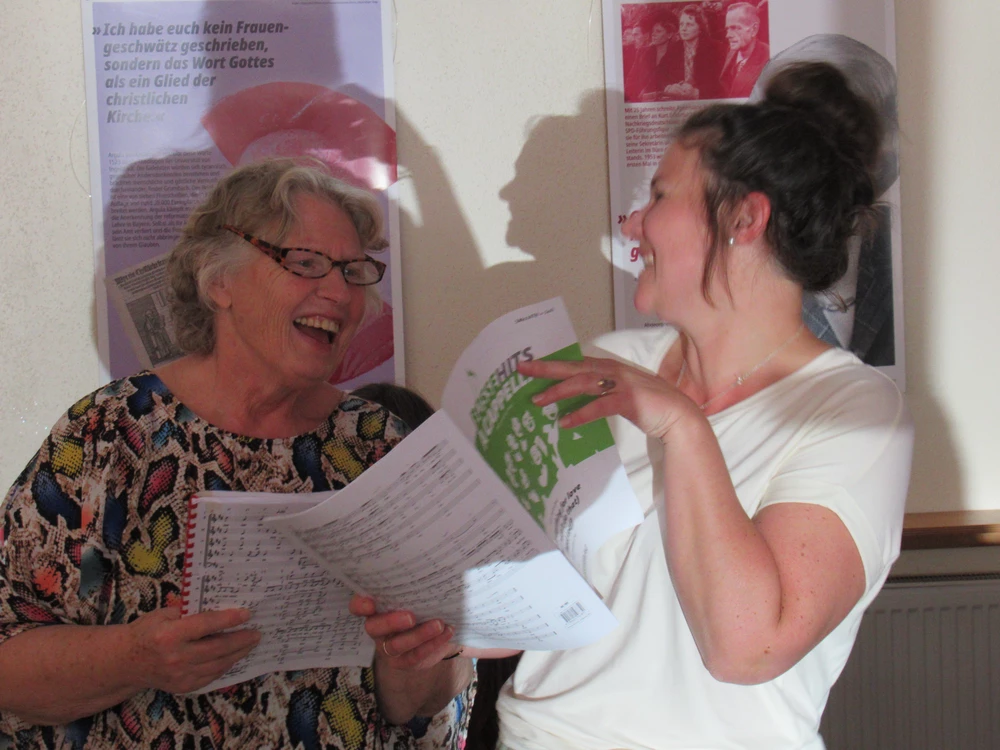 Knapp 50 Mitglieder des Kreis-Chorverbandes Allgäu trafen sich am Samstag, den 13. April im Kemptener Haus International, um zu lernen, was es braucht, damit es richtig groovt. Wer in der Poststraße unterwegs war, konnte durch die offenen Fenster des Proberaumes mitreißenden A Capella Sound hören, professionell angeleitet von Agnes Haßler, die sich durch ihre preis-gekrönte Chorarbeit längst einen Namen gemacht hat. Grundlage des Workshops waren von ihr erstellte Arrangements, die den Teilnehmenden schon im Vorfeld zur Vorbereitung bereit gestellt wurden. Nach ausführlichem Aufwärmtraining ging es dann recht schnell zur Sache. Ein bisschen Theorie und ganz viel Praxis. Manchmal ist das Geheimnis, dass es kein Geheimnis gibt, sondern einfach detaillierte Chorarbeit. "Singen ist Hochleistungssport", erklärte Haßler der Gruppe, die sich über Stunden hinweg hochkonzentriert durch die Stücke führen ließ. Das Grundgefühl der Musik, Phrasierung in den Passagen und die Mischung von Sounds durch unterschiedliche Stimmtechnik waren genauso Thema wie die akkurate Ausführung synkopierter Rhythmen, die zum Teil unter der Diktatur des Metronoms akribisch geübt wurde. Mit größter Genauigkeit erarbeitete die Referentin alle relevanten Aspekte einer Passage, um das Stück auf diese Weise Abschnitt für Abschnitt zum Klingen zu bringen. Und da findet man es nun doch, das Geheimnis, das sich im Klang der Musik verbirgt und so lohnend ist, dass alle Mühen dafür schnell vergessen sind. Viel schöner aber als dieser eine Tag ist die Tatsache, dass unsere Mitglieder das Gelernte in ihre eigenen Proben mitnehmen können, wo es sich weiter entfalten darf. So freuen wir uns, dass unsere Region wieder einen kleinen Schritt weiter ist auf einem Weg, der richtig groovt.