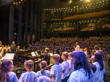 35 Chorklassen erleben an zwei Tagen die "WM der Tiere" mit der Uni Big Band Augsburg.