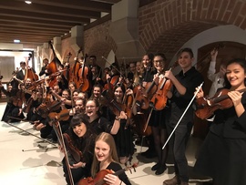 Im Abschlusskonzert am 19. Januar 2019 im Eppleinsaal in der Burg Nürnberg konnten sich Eltern, Freunde und Gäste aus dem Kultusministerium überzeugen, dass hier beste Arbeit geleistet wurde. Die Programmauswahl erhielt Werke quer durch die Jahrhunderte von Mozart bis zur Filmmusik, dazwischen Duette, Trios und Quartette, jeder Auftritt für sich ein großer Moment. „Wenn ich an meine eigenen Versuche auf dem Streichinstrument denke, so habe ich größte Achtung vor diesen jungen Leuten, die in so kurzer Zeit so viel vollbringen“, lobte Ministerialdirektor Herbert Püls vom Kultusministerium die Darbietungen. Das kam an. Mit glühenden Wangen und strahlenden Gesichtern nahmen die Mitglieder im Bayerischen Realschulstreichorchester ihre Teilnahmebestätigung entgegen. Die Verabschiedung anschließend, während die Eltern das Gepäck herausschleppten, war überaus herzlich, die Botschaft ganz klar: nächstes Jahr wieder!
