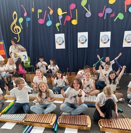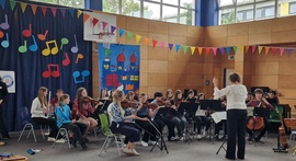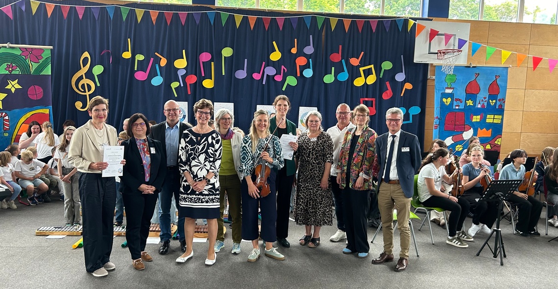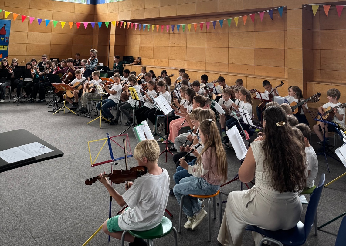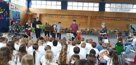 Hierzu zählt auch, dass die Jugendlichen aus dem Gymnasium im Anschluss den (Vor-)Schulkindern ihre Instrumente vorstellen - im wahrsten Sinn des Wortes "vorbildlich".