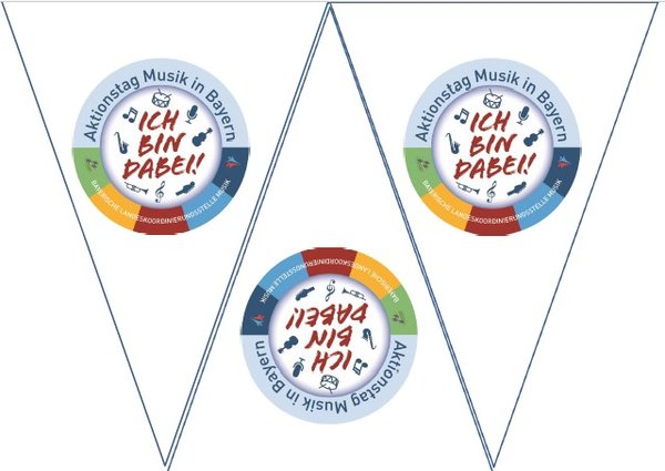 Wimpel ausschneiden - Rückseiten kreativ gestalten - gelocht auf eine lange Schnur auffädeln - als Girlande am Aktionstag quer über den Veranstaltungsort aufhängen