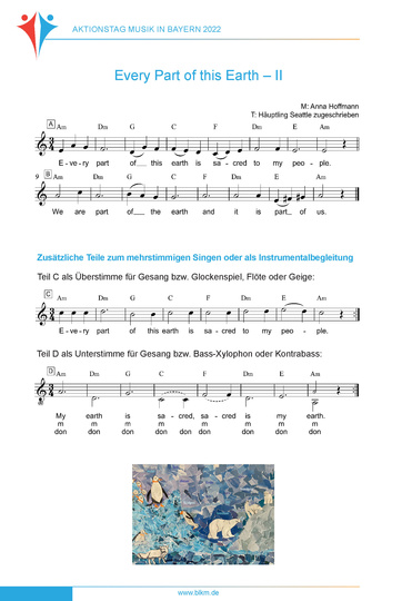 Das Lied "Every Part Of This Earth - II" ist ebenso wie die Lieder "Ev'ry Part Of This Earth - I" und "Jeder Teil dieser Erde - III" für den Aktionstag Musik 2022 entstanden. Die fächerverbindenden Anregungen lassen sich bei allen drei Liedern umsetzen.