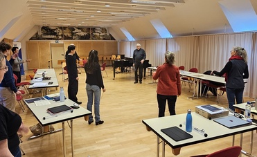 Ende Januar erhielten die Teilnehmenden am Dirigierpult diesmal unmittelbares Feedback von dem anwesenden Streichquintett und konnten ihre Kenntnisse mithilfe der Tipps von Dozent Prof. Karl-Heinz Bloemeke weiter vertiefen. Phase 3 folgt dann im März mit den Hofer Symphonikern.