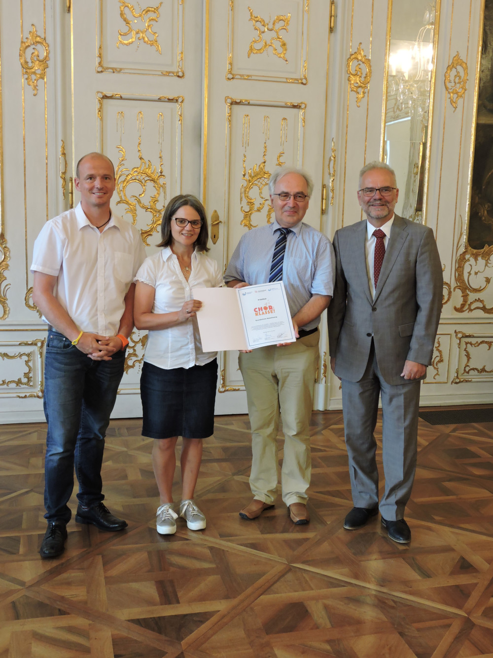 „Wir sind stolz, mit dem schwäbischen Sing-Modell „Unser Weg“ Vorreiter zu sein, nicht nur in Bayern, sondern im gesamten Bundesgebiet. Und ich möchte die Ausgezeichneten ermuntern, jetzt mit dem Zertifikat in der Hand nicht nachzulassen, sondern der Musik in der Schule weiterhin diesen Stellenwert einzuräumen.“ Mit diesen Worten überreichte Schwabens Regierungspräsident Dr. Erwin Lohner im Rahmen eines Festaktes im Rokokosaal der Regierung von Schwaben das Prädikat „Chor ist Klasse!“ an sieben Grund- und Förderschulen.