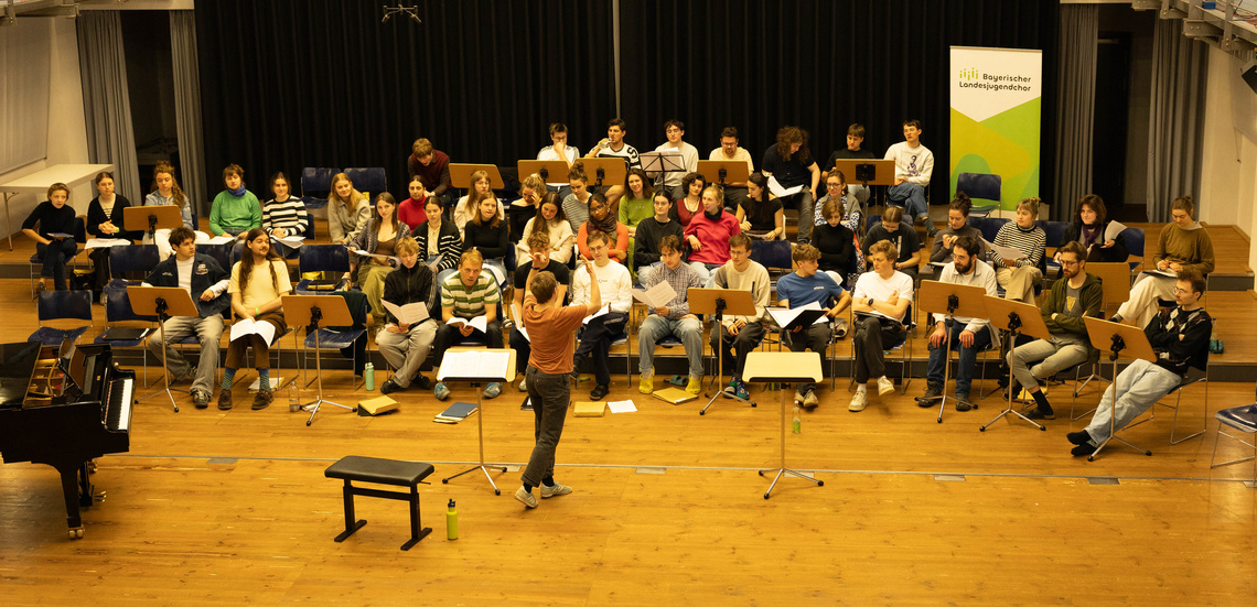Leise Schritte auf knarzendem Parkett, angestrengtes Atmen und schnelle Bewegungen. Konzentriert folgt der Landesjugendchor den Anweisungen des Kolumbianers Gabriel Galindez Cruz, der den Chor morgens auf die Bewegungen seiner Choreographie vorbereitet, bevor Franziska Kuba mit der musikalischen Arbeit beginnt. Parallel zu Chorproben, in denen Bewegung und Klang nach und nach zusammengeführt werden, findet individuelle Stimmbildung statt, Einstudierung von Arien - teils mit szenischen Elementen, Einzelproben mit Korrepetitoren und Unterricht in Musiktheorie und Gehörbildung sowie ein Repetitorium für Studieninteressierte. Auch in dieser Woche schließt sich an viele der vollgepackten Tage der Arbeitsphase ein Aufführungsabend mit formal einstudierten Darbietungen oder chorintern geplanten Vorführungen an. Am vorletzten Abend findet das interne Werkstattkonzert mit fast kompletter Aufführung des Konzertprogramms statt.