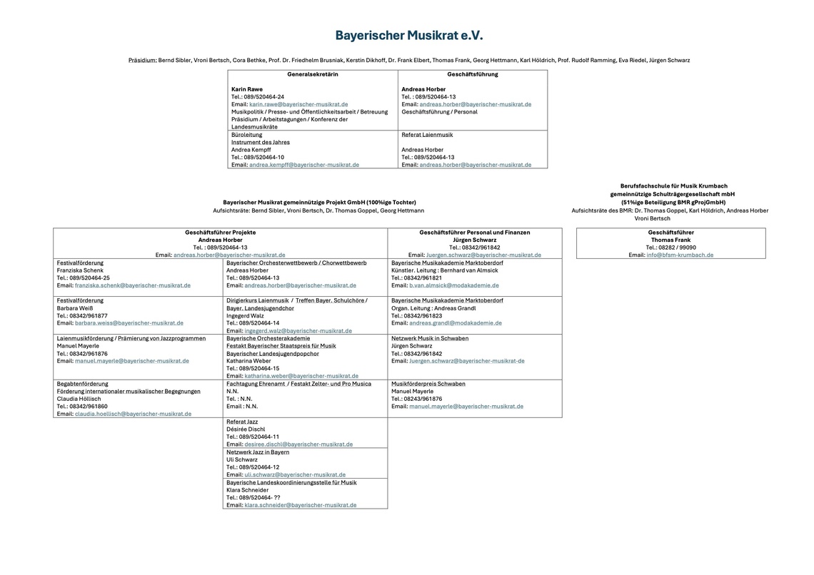 Beschreibungen der organisatorischen Struktur des Bayerischen Musikrat e.V. und seiner 100% Tochtergesellschaft, der Bayerischer Musikrat gemeinnützige Projekt GmbH: