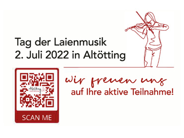 Die Zentralveranstaltung der Europa-Tage der Musik wird vom 01.07. bis 03.07.2022 in Altötting stattfinden. Traditionell wird in diesem Rahmen auch der Tag der Laienmusik am 02.07.2022 gefeiert. Dafür können sich ab sofort interessierte Chöre und Ensembles anmelden!