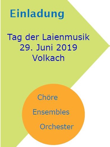 Der "Tag der Laienmusik" 2019 wird in Volkach (Mainschleife) stattfinden. Eingebettet in die Zentralveranstaltung zu den Europa-Tagen der Musik vom 28. - 30.06.2019, bietet sich am Samstag, den 29.06.2019 ein Podium für Musikgruppen aller Art (Orchester, Chöre, Ensembles), um die Weinstadt Volkach den ganzen Tag über zum "Klingen" zu bringen.