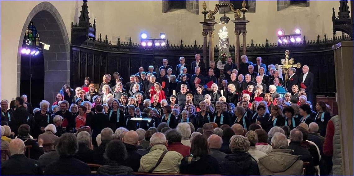 Anlässlich des 80. Jahrestags des Friedens zwischen Frankreich und Deutschland gestalteten deutsche und französische Chöre gemeinsam zwei Friedenskonzerte sowie musikalische Beiträge im Rahmen offizieller Gedenkveranstaltungen. Besonders bewegend war die zweisprachig gesungene Europahymne bei der Gedenkzeremonie am 8. Mai in Aurillac – ein starkes Zeichen für ein gemeinsames Europa und gelebte Freundschaft .