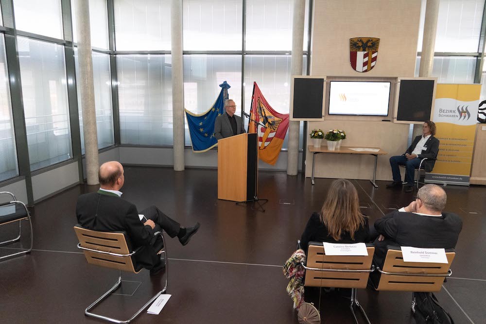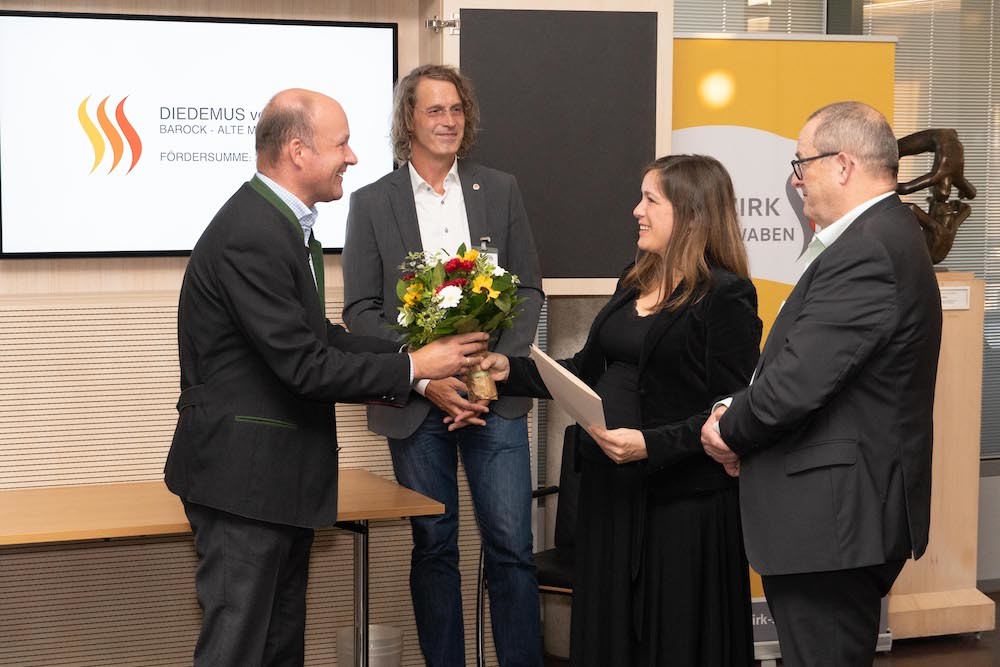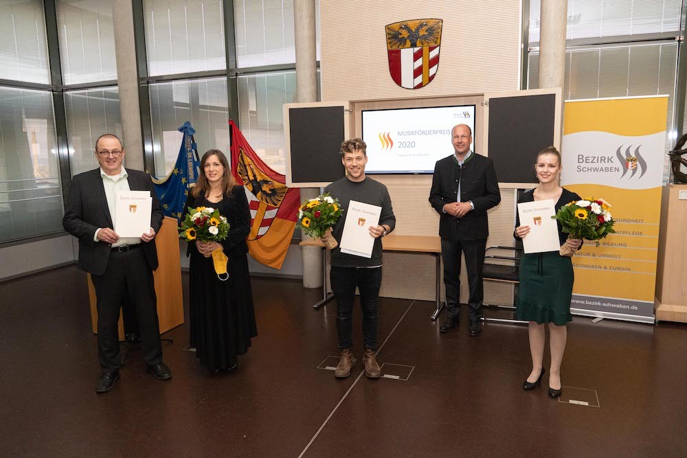 Im Rahmen eines Festaktes erhielten drei Preisträger den Musikförderpreis des Bezirks Schwaben. Ein Zeichen, das in diesem Jahr besonders wichtig ist: „Die Maßnahmen zur Eindämmung der Corona-Pandemie haben unsere Künstlerinnen und Künstler besonders hart getroffen. So ist es uns in diesem Jahr ein besonderes Bedürfnis, mit dem Musikförderpreis des Bezirks Schwaben wichtige Persönlichkeiten aus dem schwäbischen Musikleben zu fördern“, sagte Bezirkstagspräsident Martin Sailer im Rahmen der Auszeichnung. Coronabedingt fand die Verleihung in diesem Jahr in kleinem Rahmen statt. Ausgezeichnet wurden Miriam Ruf, Harfenistin aus Günzburg (Klassik), Max Schlichter, Sänger und Gitarrist aus Dillingen (Pop) sowie die DIADEMUS vocalisten unter der Leitung von Prof. Benno Schachtner aus Illertissen (Barock/Alte Musik).