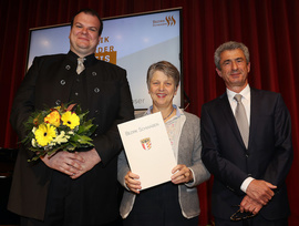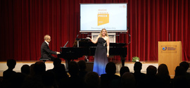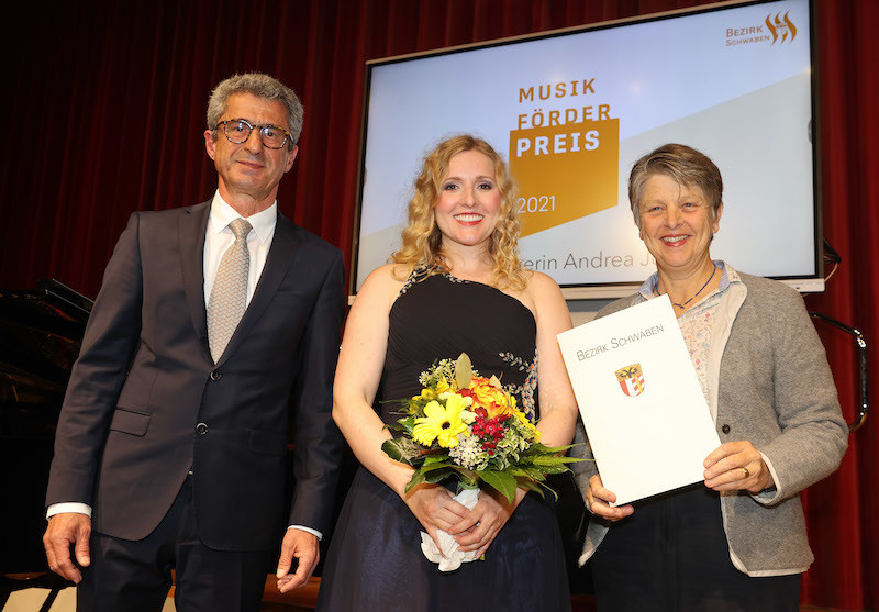 In einem feierlichen Festakt in der Bayerischen Musikakademie Marktoberdorf hat der Bezirk Schwaben am Freitag, 06.05.2022, drei junge Musikerinnen und Musiker mit dem Musikförderpreis 2021 ausgezeichnet. „Musik verbindet Menschen. Ich freue mich, dass wir nach langer Corona-Pause die Preisträgerinnen und Preisträger nun vor Ort ehren dürfen“, betonte die stellvertretende Bezirkstagspräsidentin Barbara Holzmann im Rahmen der Verleihung. Geehrt wurden die Violinistin Veronika Eberle aus Donauwörth, die Sopranistin Andrea Jörg aus Oy-Mittelberg und der Bariton Johannes Mooser aus Marktoberdorf.