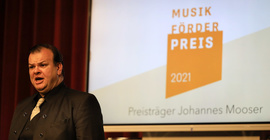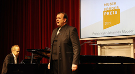 Für geplante Konzertaufführungen unter dem Motto „Liebe und das Reisen“ mit Liederzyklen von Gustav Mahler und Gabriel Fauré sowie seine musikalischen Beiträge erhält Mooser einen Förderpreis über 15.000 Euro.