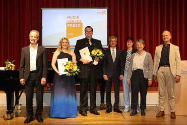 Ausgezeichnet wurden Miriam Ruf, Harfenistin aus Günzburg (Klassik), Max Schlichter, Sänger und Gitarrist aus Dillingen (Pop) sowie die DIADEMUS vocalisten unter der Leitung von Prof. Benno Schachtner aus Illertissen (Barock/Alte Musik).