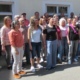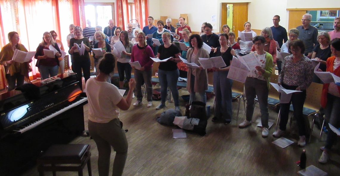 Knapp 50 Mitglieder des Kreis-Chorverbandes Allgäu trafen sich am Samstag, den 13. April im Kemptener Haus International, um zu lernen, was es braucht, damit es richtig groovt. Wer in der Poststraße unterwegs war, konnte durch die offenen Fenster des Proberaumes mitreißenden A Capella Sound hören, professionell angeleitet von Agnes Haßler, die sich durch ihre preis-gekrönte Chorarbeit längst einen Namen gemacht hat. Grundlage des Workshops waren von ihr erstellte Arrangements, die den Teilnehmenden schon im Vorfeld zur Vorbereitung bereit gestellt wurden. Nach ausführlichem Aufwärmtraining ging es dann recht schnell zur Sache. Ein bisschen Theorie und ganz viel Praxis. Manchmal ist das Geheimnis, dass es kein Geheimnis gibt, sondern einfach detaillierte Chorarbeit. "Singen ist Hochleistungssport", erklärte Haßler der Gruppe, die sich über Stunden hinweg hochkonzentriert durch die Stücke führen ließ. Das Grundgefühl der Musik, Phrasierung in den Passagen und die Mischung von Sounds durch unterschiedliche Stimmtechnik waren genauso Thema wie die akkurate Ausführung synkopierter Rhythmen, die zum Teil unter der Diktatur des Metronoms akribisch geübt wurde. Mit größter Genauigkeit erarbeitete die Referentin alle relevanten Aspekte einer Passage, um das Stück auf diese Weise Abschnitt für Abschnitt zum Klingen zu bringen. Und da findet man es nun doch, das Geheimnis, das sich im Klang der Musik verbirgt und so lohnend ist, dass alle Mühen dafür schnell vergessen sind. Viel schöner aber als dieser eine Tag ist die Tatsache, dass unsere Mitglieder das Gelernte in ihre eigenen Proben mitnehmen können, wo es sich weiter entfalten darf. So freuen wir uns, dass unsere Region wieder einen kleinen Schritt weiter ist auf einem Weg, der richtig groovt.