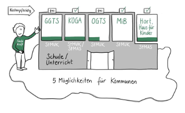 Sie differenziert zwischen Angeboten unter Schulaufsicht (verlängerte Mittagsbetreuung, offene und gebundene Ganztagsschule mit Ergänzung um Randzeiten- und Ferienbetreuung) und Angeboten der Kinder- und Jugendhilfe (Hort und die kooperative Ganztagsbildung) und definiert im Detail: