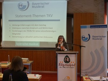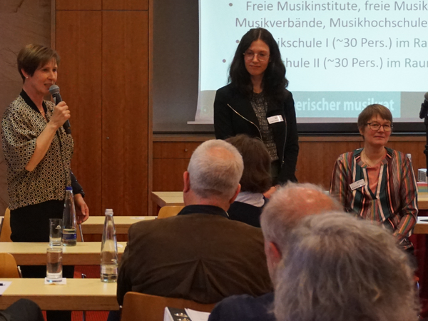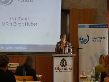 Ministerialrätin Birgit Huber vom Staatsministerium für Unterricht und Kultus überbrachte Grüße von Staatsministerin Anna Stolz und sprach von der Bedeutung der Musik im Leben der Kinder. Den Ganztag beschrieb sie als Chance für die Musik. Im Bewusstsein der Schwierigkeiten bei der Umsetzung und um den Austausch beizubehalten, bot sie die Einrichtung eines Runden Tisches an, gemeinsam mit MRin Alexandra Brumann vom Staatsministerium für Unterricht und Kultus sowie MR Martin Breuer vom Staatsministerium für Wissenschaft und Kunst.