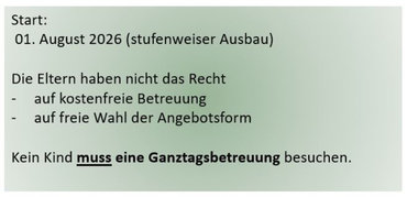 Dr. Martina Schliessleder nennt, wie bereits Stefanie Pistor, das von Bundestag und Bundesrat im September 2021 verabschiedete Gesetz zur ganztägigen Förderung von Kindern im Grundschulalter und ergänzt, dass der Rechtsanspruch gilt – bis auf maximal 4 Wochen – auch in den Ferien gelte.