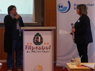 AG 3 Petra Schweitzer (mit Mikro), Franziska Reitenberger (m.) und MinR Birgit Huber (sitzend)
