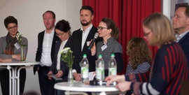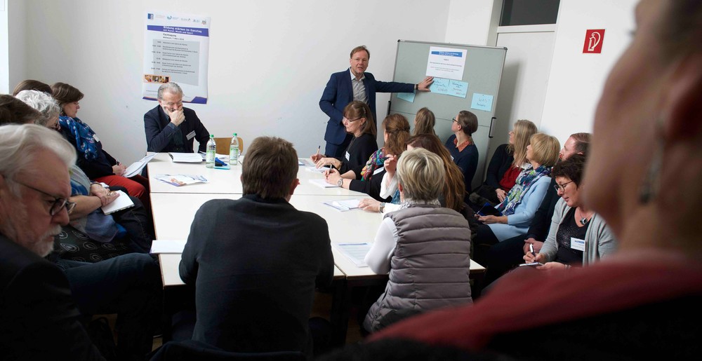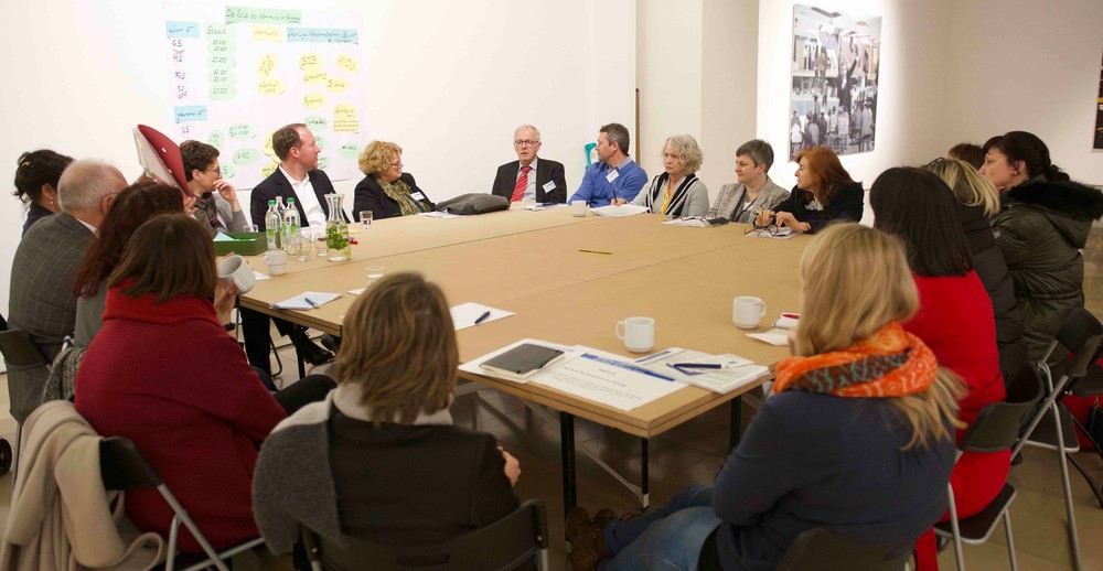 Zum Abschluss stellten Moderatoren die Ergebnisse der Runden Tische vor. Am Vormittag hatten Experten und Ratsuchende aus den Bereichen Schule, Verwaltung und externe Anbieter von Kunst, Musik und Sport an insgesamt sieben „Runden Tischen“ übergreifende und fachbezogene Themen erörtert und diskutiert.