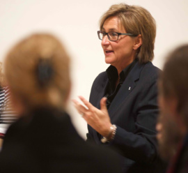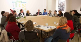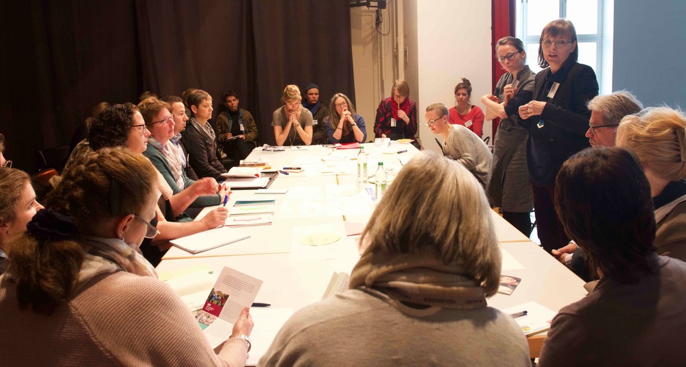 Um "Modellprojekte für kulturelle Schulentwicklung" ging es an Tisch 1. Andrea Engl vom Kulturreferat München erläuterte das bundesweit etablierte Programm zur Verbesserung der Kooperation zwischen Schulen und externen Partnern im Bereich kultureller Bildung. Einmütig verlief der Austausch darüber, dass kulturelle Bildung dem System Schule durch viele dadurch erzielte Effekte positiv zur Seite stehe, dazu zählten u.a. die Bereiche Inklusion, Integration und Partizipation durch selbstbestimmtes Handeln. Einig waren sich alle Tisch-Teilnehmer auch darin, dass kulturelle Bildung im Ganztag einen großen Mehrwert für alle Beteiligte darstelle. Diese positiven Ergebnisse würden aber nur erzielt, wenn alle Bereiche gut aufgestellt seien. Um welche Bereiche es sich dabei handelt, wurde schwerpunktmäßig an den Tischen 2-6 besprochen.