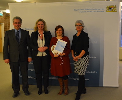 Die Urkunde wurde ihr von Staatsministerin Kerstin Schreyer am 2. Dezember 2019 im Bayerischen Sozialministerium in München überreicht: