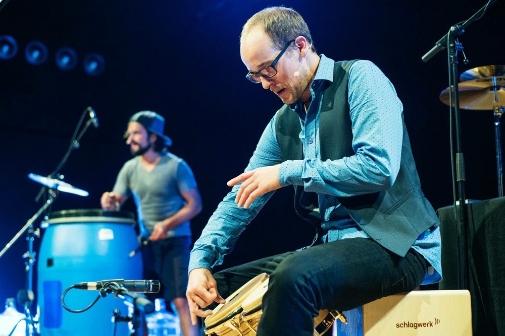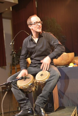 Claudio Spieler ist hier ebenfalls kein Unbekannter. Als Meisterschüler von Hakim Ludin war er bei vielen rhythm Workshops dabei. Jetzt ist er für seine individuelle Mischung aus virtuoser Meisterschaft auf Cajon, Bongos und Kanjira in Verbindung mit einzigartigem Verständnis für indische Rhythmik und Silbensprache bekannt. Er steht für eine Mixtur aus "traditionellen" Elementen des Latin-Genres mit Einflüssen aus Flamenco und Konnakol/karnatischer Musik gleichermaßen. Zusammenarbeit mit Konstantin Wecker, Hannes Wader, Mamadou Diabate.