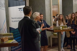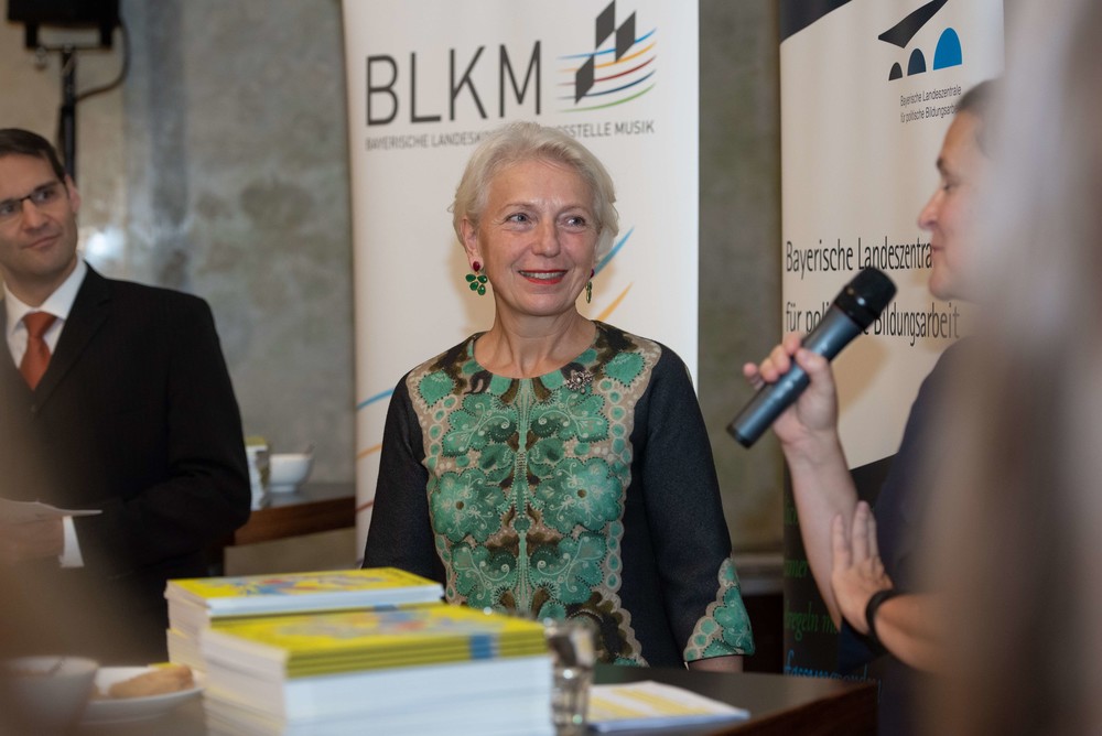 Die BLKM war als Koooperationspartner für die Schulkooperationen beteiligt. Christian Schumacher, Projektleiter ind der BLKM begrüßte zusammen mit Frau Uta Löhrer von der Bayerischen Landeszentrale für politische Bildungsarbeit Schülerinnen und Schülerinnen, die kostenfreie Eintrittskarten erhielten. Gräfin Angela von Wallwitz (Tochter des Komponisten Karl Feilitzsch und Initatorin der Veranstaltung) wohnte der exklusiven Begrüßung bei und berichtete eindrucksvoll von der Idee und Hintergrund zur Veranstaltung.