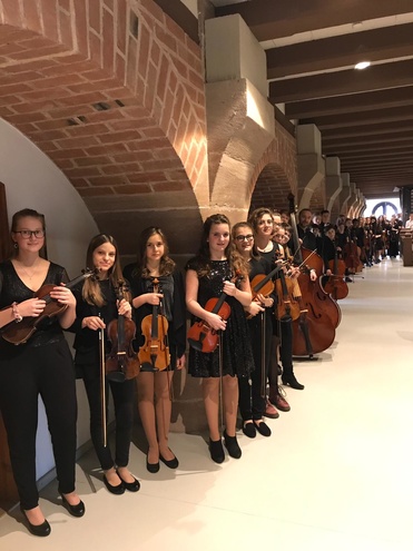 „Noch ist es eine Ausnahme, dass an der Realschule ein Zugang zu einem Streichinstrument möglich ist, ganz zu schweigen von einer Gelegenheit, in einem Orchester zu spielen“, erklärt Evelyn Beißel, Fachberaterin für Musik an bayerischen Realschulen, die Initiative. 2017 unternahm sie mit Unterstützung des Bayerischen Kultusministeriums einen ersten Versuch. Beißel: „Es ist unglaublich, in welchem Maß sich diese Schülerinnen und Schüler fordern lassen, wenn sie fünf Tage hier auf der Burg sind, um gemeinsam zu musizieren. Obwohl es kaum Pausen gibt, wollen sie immer noch länger musizieren. Das steckt uns Pädagogen natürlich an.“