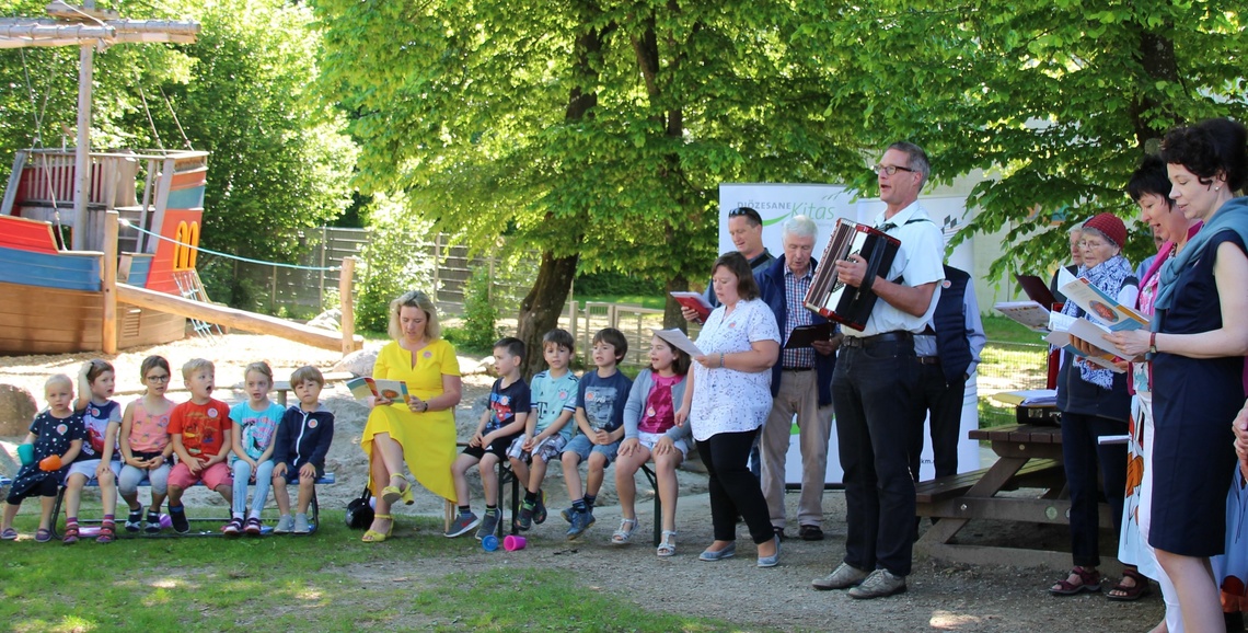 Als Schirmherrin für die Kindertageseinrichtungen hat Familienministerin Kerstin Schreyer am ersten Aktionstag Musik in Bayern 2019 die katholische Kindertagesstätte St. Birgitta in Unterhaching besucht. „Ich freue mich, dass die Kinder hier auch bayerische Lieder singen. Das stärkt die Mundart und schafft ein Gefühl für Tradition!“