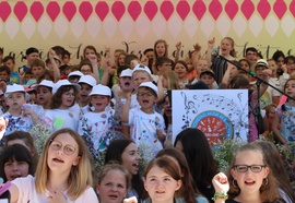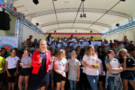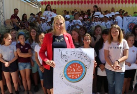 "Musik vereint uns! Das ist das Motto des diesjährigen ,Aktionstages Musik in Bayern‘, und ich bin sicher, jeder, der heute hier ist, kann es bestätigen: Miteinander Singen und Musizieren verbindet die Menschen – egal, welchen Alters und welcher Herkunft –, schafft eine lebendige Gemeinschaft und bereitet große Freude“, betonte Kultusstaatssekretärin Anna Stolz bei der offiziellen Eröffnungsveranstaltung des Aktionstags Musik in Bayern 2019 auf der Bayeischen Gartenschau Wassertrüdingen. Rund 220 Kinder des Evang. Kindergartens Unterm Himmelszelt, des Kath. Kneipp-Kinderhauses St. Walburga, der Betty-Staedtler-Mittelschule und der Staatl. Realschule Wassertrüdingen sangen zusammen auf der Hauptbühne der Bayerischen Gartenschau Wassertrüdingen.