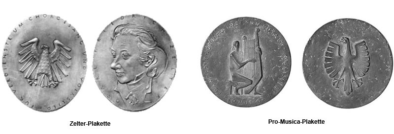 1965 beschloss der damalige Bundespräsident Theodor Heuss, Chorvereinigungen für ihre langjährige Pflege der Chormusik die Zelter-Plakette zu übergeben. 10 Jahre später stiftete er die Pro Musikca-Plakette für ebenso erfolgreiche Musikvereinigungen.