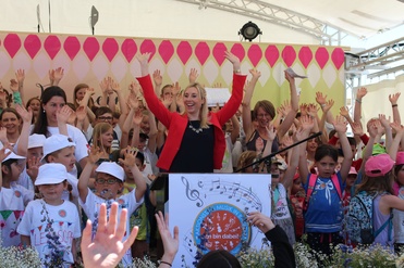 Kultusstaatssekretärin Anna Stolz eröffnete den Aktionstag Musik in Bayern 2019 auf der Bayerischen Gartenschau in Wassertrüdingen im Beisein zahlreicher Schulklassen.