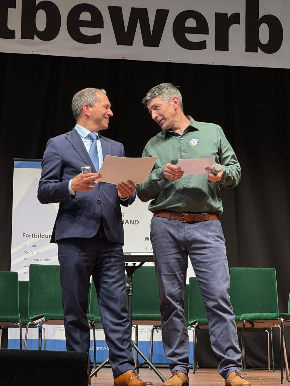 Gemeinsam mit anderen Musik machen ist eine tolle Sache und nicht aus der Schule wegzudenken. Der Aktionstag Musik bietet dazu einen Anlass, die Begeisterung an einem bestimmten Tag im Jahr auch nach außen hin zu zeigen. Im Gespräch mit Frank Elbert brachte Ministerialdirektor Martin Wunsch vom Kultusministerium die Besonderheiten des gemeinsamen Musizierens auf den Punkt und freute sich dann mit den Bläserklassen über die Preise nach einem spannenden Wettbewerbstag.