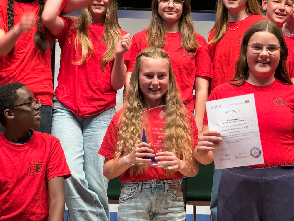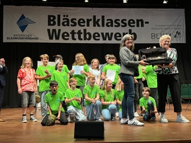 Bereits um 13.30 Uhr erhielten die Bläserklassen aus Grundschulen ihren Pokal. Im Rahmen der Eröffnung zum Aktionstag Musik 2024 wurden um 15.15 Uhr dann Bläserklassen aus Mittelschulen, Realschulen und Gymnasien ausgezeichnet.