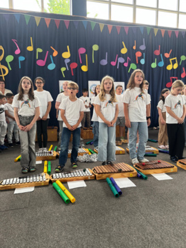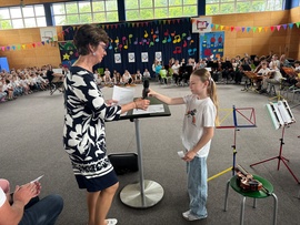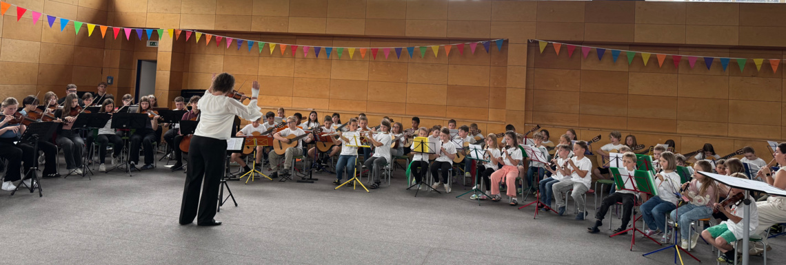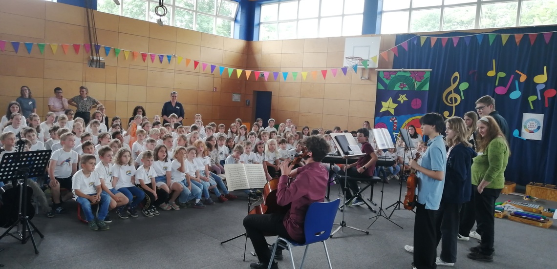Hierzu zählt auch, dass die Jugendlichen aus dem Gymnasium im Anschluss den (Vor-)Schulkindern ihre Instrumente vorstellen - im wahrsten Sinn des Wortes "vorbildlich".