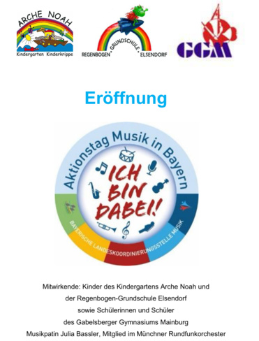 Frau Ministerialdirigentin Eva Schwab dankt in Vertretung von Schirmherrin Frau Staatsministerin für Unterricht und Kultus Anna Stolz, MdL allen Mitwirkenden für das außerordentliche Engagement und die gelungenen Darbietungen. "Ihr habt recht mit dem Satz: Musik ist ein Zauber und dieser Zauber macht euch, liebe Kinder und Jugendliche, stark und glücklich. Das weiß ich aus eigener Erfahrung." Für die bayernweiten Aktionstags-Projekte wünscht sie auch allen anderen 165.000 Mitwirkenden aus 1100 angemeldeten Einrichtungen zauberhafte musikalische Begegnungen.