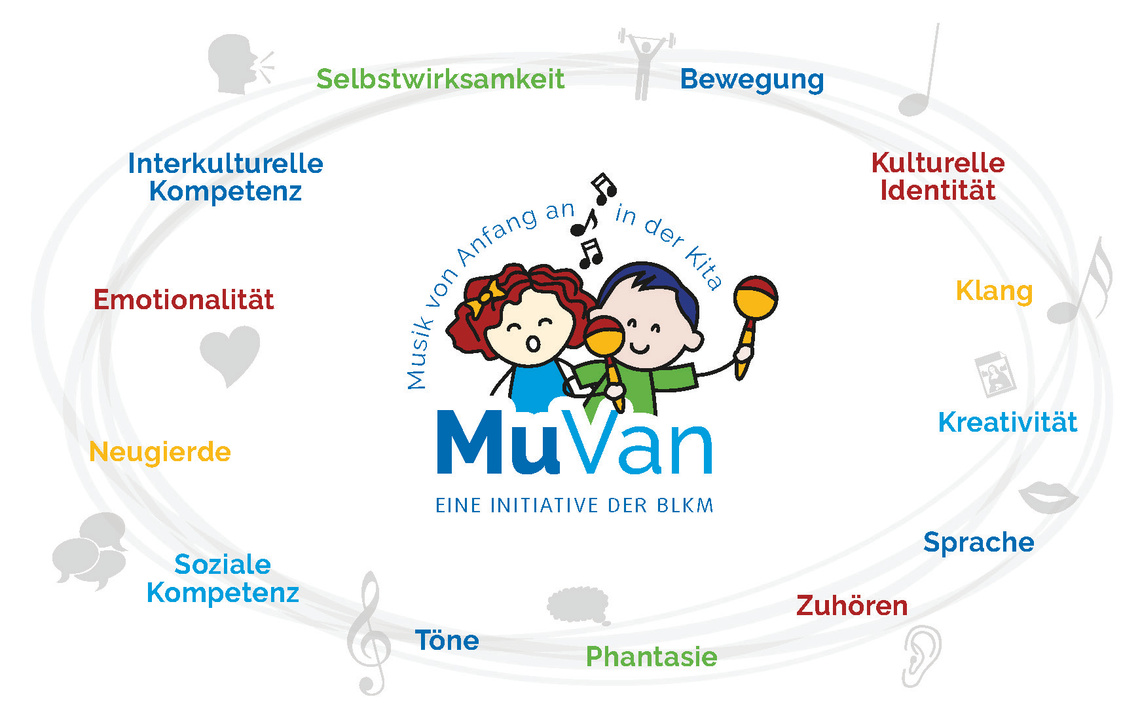 „Musik von Anfang an in der Kita“ lautet die Initiative MuVan der Bayerischen Landeskoordinierungsstelle Musik (BLKM). Im Zentrum der Initiative steht das Kind mit folgenden Kern-Zielen: