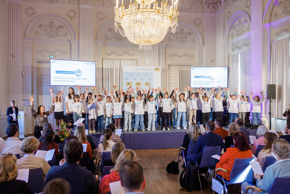 Der für die Musikbegeisterten Grundschulen komponierte Song "Wir machen Musik" erlebte eine mitreißende Uraufführung durch den Chor der Grundschule Eggenfelden. Das Publikum stimmte lautstark im Refrain mit ein.