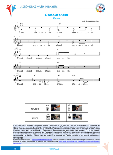 Chocolat chaud - Kopiervorlage Lied