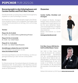 Die Teilnahme ist nur am Gesamtprojekt möglich. Eine Teilnahme an einzelnen Phase ist nicht vorgesehen. Das Projekt endet mit zwei Abschlusskonzerten am Samstag, 14.03. und Sonntag, 15.03.2026.