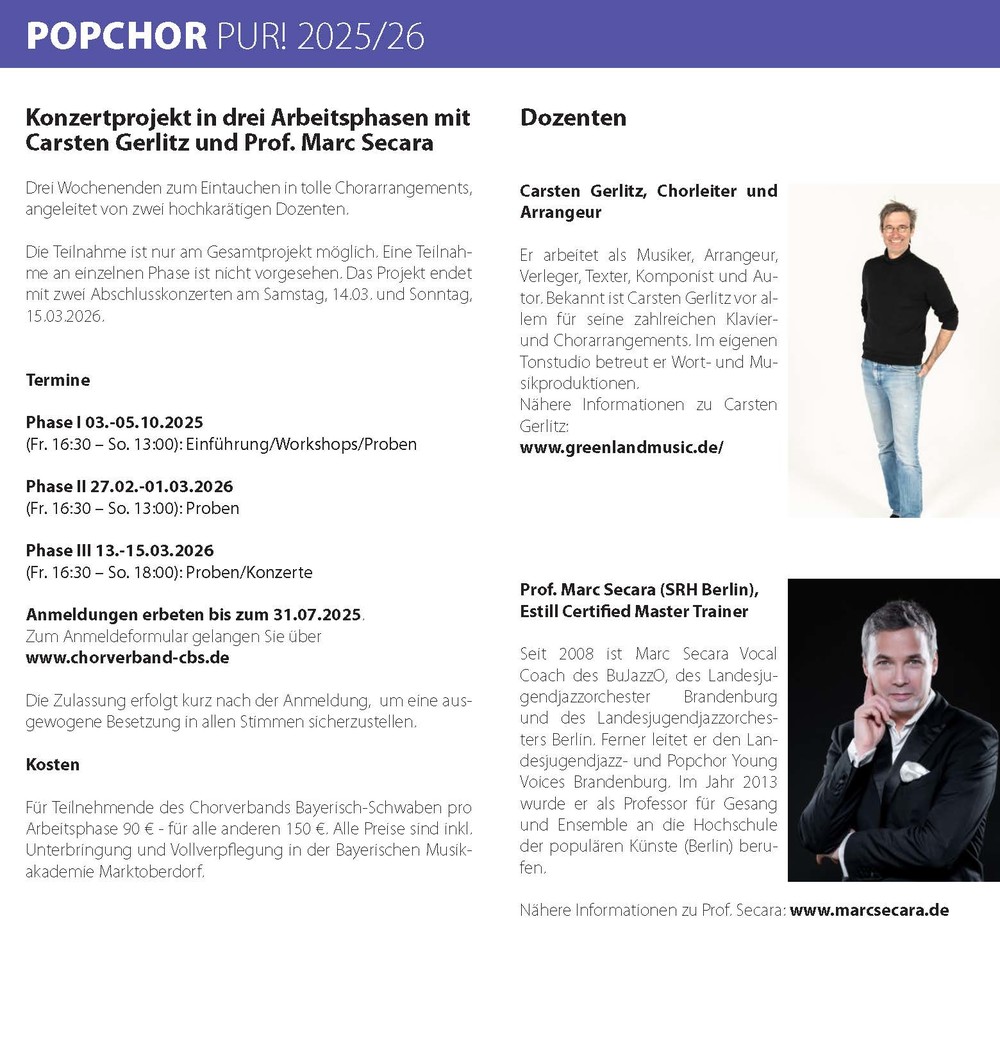Das Konzertprojekt "PopChor pur" ist asugebucht. Eine Anmeldung ist derzeit nicht möglich.