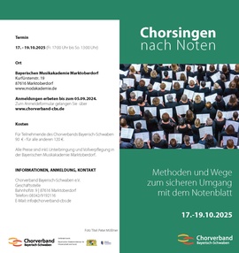 17.-19.10.2025 in der Bayerischen Musikakademie Marktoberdorf (Fr. 17:00 Uhr bis So. 13:00 Uhr).