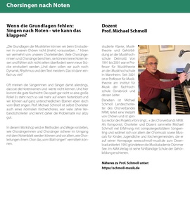 In diesem Workshop wird er Methoden und Wege vorstellen, wie Chorsänger*innen sicherer im Umgang mit dem Notenblatt werden können und vor allem, wie Chorleitungen ihrem Chor das „vom Blatt singen“ vermitteln können.