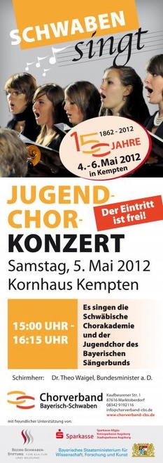 Die Schwäbische Chorakademie - das Jugend-Auswahlensemble des Chorverbands mit 60 Mitgliedern zwischen 15 und 23 Jahren unter der künstlerischenn Leitung von Stefan Wolitz und der Jugendchor des Bayerischen Sängerbunds unter seinem Dirigenten Stefan Grünfelder zeigten den hohen Leistungsstand der intensiven Nachwuchsarbeit der beiden Verbände.
