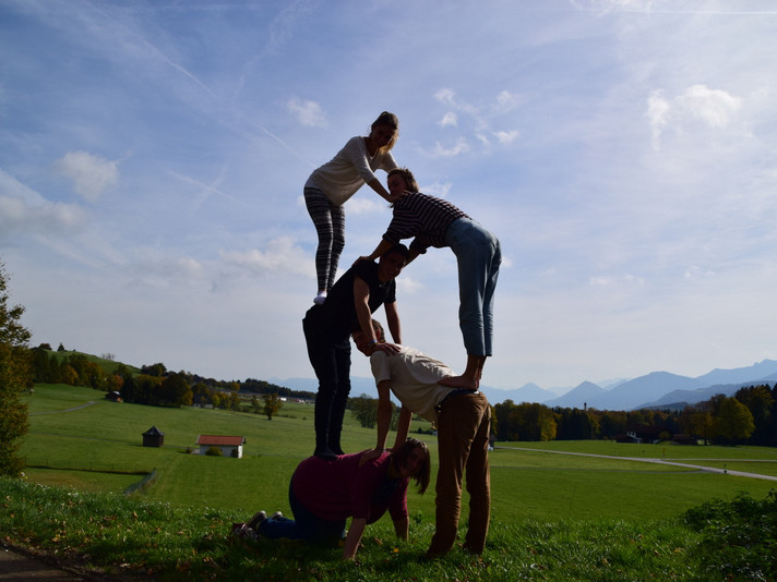 Insgesamt 160 Teilnehmer aus Bayern, Bayerisch Schwaben, aus Oberösterreich, Salzburg, Südtirol, Tirol, aus dem Trentino/Italien und aus Vorarlberg kamen für ein Wochenende zusammen, um füreinander und miteinander zu musizieren. Und sie ließen keine Zeit verstreichen: gleich am ersten Abend nach der offiziellen Begrüßung und dem Abendessen standen alle zusammen auf der Bühne und sangen und tanzten ungezwungen voller Begeisterung miteinander: teils kannte man dieselben Lieder, teils lernte man sie flugs voneinander oder man war vollauf beschäftigt mit den begleitenden Mooves. Für die im Saal zuhörenden Erwachsenen war überdeutlich spürbar: Musik kennt keine Grenzen und verbindet Menschen im Handumdrehen! Und das Wunderbare am Singen: man hat sein Instrument immer einsatzbereit dabei.