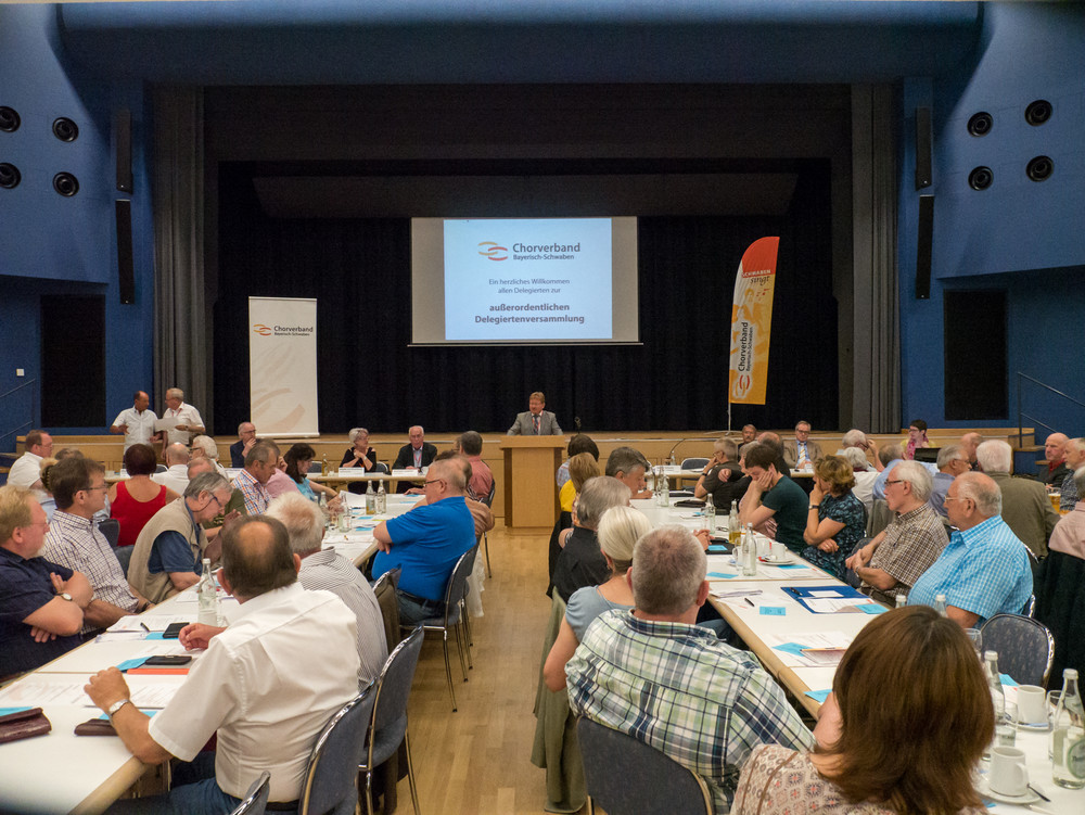 Schwabmünchen Nun steht es fest: Der Chorverband Bayerisch-Schwaben (CBS) verlässt den Deutschen Chorverband (DCV). Die außerordentliche Delegiertenversammlung beauftragte das Präsidium des Chorverbandes Bayerisch-Schwaben die Mitgliedschaft im Deutschen Chorverband fristgerecht zu kündigen und zum 31.Dezember 2017 den Austritt aus dem Dachverband zu erklären. Der satzungsgemäßen Einberufung der a.o. CBS-Delegiertenversammlung sind intensive Beratungen innerhalb des CBS-Präsidiums und des CBS-Gesamtvorstands, der durch die Vorsitzenden der Sängerkreise repräsentiert wird, mit jeweils einstimmigem Votum vorausgegangen. Dr. Paul Wengert, Präsident des CBS, begrüßte die insgesamt 148 stimmberechtigt anwesenden Delegierten der Mitgliedschöre und der Sängerkreise im Namen des CBS-Präsidiums in der Stadthalle Schwabmünchen. Er stellte die Beschlussfähigkeit der Versammlung fest und übergab nach Genehmigung der Tagesordnung das Wort an den geschäftsführenden Präsidenten Jürgen Schwarz, der den CBS-Delegierten einen umfassenden Bericht zu den Entwicklungen im Deutschen Chorverband gab. Auf dieser Grundlage diskutierten die Delegierten ausgewogen und ausführlich die anstehenden Entscheidungen und haben nach mehr als 3-stündiger Tagung mit überwältigender Mehrheit den Beschluss zum Austritt des Chorverbands Bayerisch-Schwaben aus dem Deutschen Chorverband mit 147 Ja-Stimmen und einer Enthaltung getroffen. Auf dieser Grundlage wurde im Anschluss eine angepasste Beitragsordnung ab 01.01.2018 verabschiedet, die zu einer Entlastung der Sängerkreise im Bereich der Kinder- und Jugendchöre, sowie zu einer Verminderung des Beitragsaufkommens bei den Erwachsenenchören führt. Die Mitglieder im Chorverband Bayerisch-Schwaben werden über die Entwicklungen gesondert informiert.