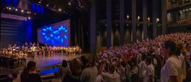 „Musik führt Menschen zusammen, stärkt den Gemeinschaftssinn und fördert die Kreativität. Singen und Musizieren hat deshalb an unseren Schulen einen besonderen Stellenwert.“ Mit diesen Worten begrüßte Staatssekretärin Carolina Trautner am Donnerstag rund 800 Chorklassen-Kinder aus Grund- und Förderschulen im Regierungsbezirk Schwaben und Oberbayern zur „WM der Tiere“. Gemeinsam mit der Bigband der Universität Augsburg mit Leader Prof. Dr. Bernhard Hofmann und unter der souveränen Leitung von Karl Zepnik sangen sie moderne Kinderlieder und wurden damit Teil der Geschichte aus der Feder der Erzählerin Christiane Franke.