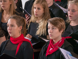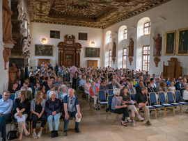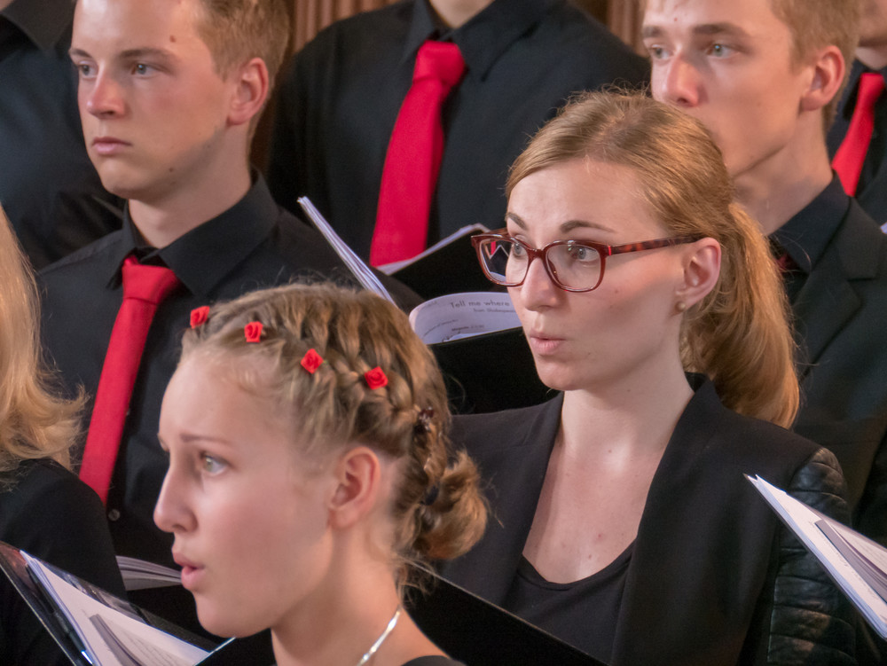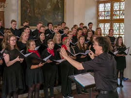 Diese Faszination hat auch Stefan Wolitz und seine Schwäbische Chorakademie gepackt und so machten sie sich auf, den musikalischen Spuren in der Vokalmusik zu folgen, die durch Shakespeares Texte in drei Jahrhunderten Musikgeschichte angeregt wurden. In nur zwei Arbeitsphasen erarbeiteten sich die jungen Sängerinnen und Sänger mit ihrem Chorleiter Wolitz, seinem Stimmbildnerteam und dem Pianisten Manfred Eggensberger ein umfangreiches, packendes Programm mit a-capella Sätzen in wechselnden Besetzungen und klavierbegleiteten Solobeiträgen. Entstanden ist so ein hinreißend kurzweiliges und interessantes Chorkonzert auf höchstem Niveau, das vom Publikum mit Beifallstürmen gewürdigt wurde. Schön auch, dass durch kurze, humorvolle Erläuterungen durch die jungen Sängerinnen und Sänger die Zuhörer leichten Zugang zu den Komponisten und deren Shakespeare-Vertonungen finden konnten.