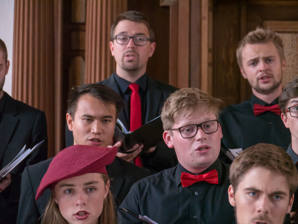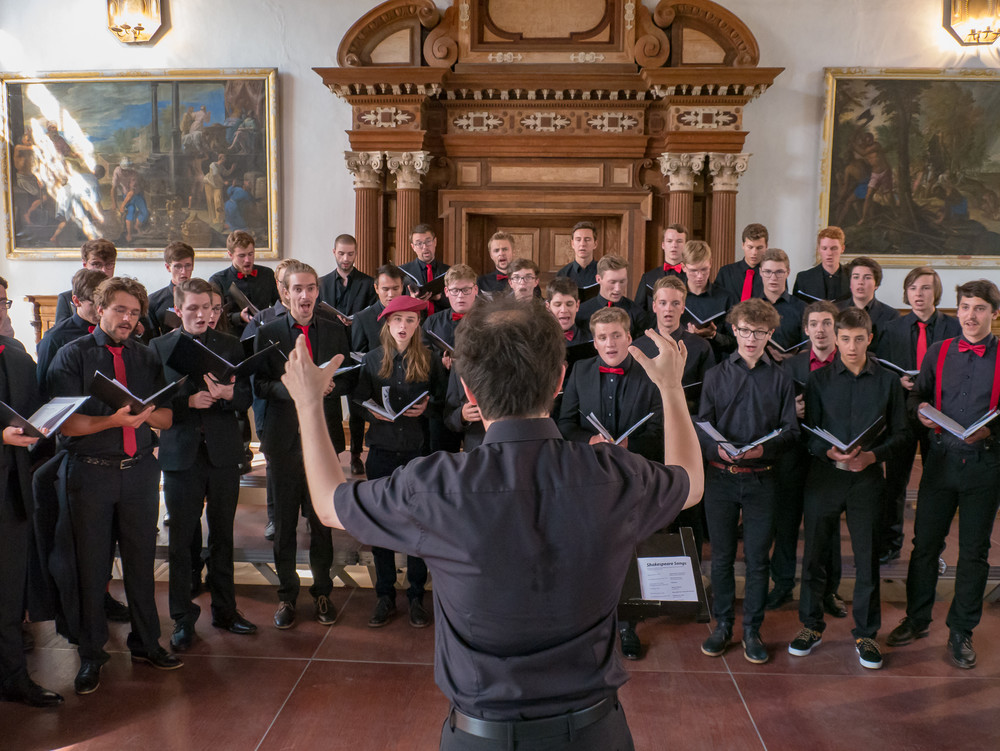 Gegenüber der Liedkomposition zu Shakespeare in England, die im 18. Jahrhundert ihre Blütezeit hatte, entwickelte sich im 19. und 20. Jahrhundert im deutschsprachigen Raum eine eigene Tradition. Waren in England Shakespearelieder meist im Hinblick auf die Theatersituation komponiert, so entstand das deutsche romantische Shakespeare-Lied -losgelöst von den Dramen - unmittelbar aus der Wirkung der Gedichte. Dieser Tradition folgen die Komponisten noch heute und folglich ordneten die Programmgestalter ihre Liedbeiträge nach den Themen Liebe und Liebesleid, Tod und mystisch Märchenhaftes. Das Programm gewann dadurch an Farbe, weil sich Stilrichtungen, Besetzungen, Epochen ebenso mischten wie die Liedbeiträge aus den Dramen Shakespeares (Cymbeline, Hamlet, Othello, Macbeth, Sommernachtstraum), durchsetzt von Liedern mit Texten aus den Shakespeare-Sonetten. So erklangen aus dem deutschen Sprachraum Schuberts Ständchen aus dem „Cymbeline“ für Männerchor, Felix Mendelssohn-Bartholdys begeisternd gebotenes „Lied mit Chor“ aus dem Sommernachtstraum (Solistinnen: Mona Sonntag und Anna-Lena Gerbl), von Erich Wolfgang Korngold „When Birds Do Sing“ (Solistin: Solitaire Bachhuber) und Desdemona’s Song (Solistin: Lena Zeizel) aus Othello und aus Macbeth die Hexen „When shall We Three Meet Again?“ von Stefan Kalmer (*1955) neben dem Hexengesang des Finnen Jaako Mäntyjärvi (*1963) „Double, Double, Toil and Trouble“. Aus dem englischsprachigen Raum erklangen die Shakespeare-Songs des Komponisten Matthew Harris (*1956) mit „Tell Me Where is Fancy Bred“ und „It Was a Lover and His Lass“ aus den Songbooks II und III, ebenso Paul Mealor (*1975) mit „Ophelia’s Lament“ aus dem Hamlet so wie auch Rogger Quilters (1877-1953) „Come Away Death“ (Solist: Simon Christians) und “Fear No More the Heat o’the Sun“ (Solist: Daniel Müller). Ralph Vaughan Williams (1872 – 1958) war mit seinen wunderbaren Chorsätzen „Full Fathom Five“ (Fünf Faden tief) und „Over Hill, Over Dale“ aus seinen drei Shakespeare Songs vertreten.